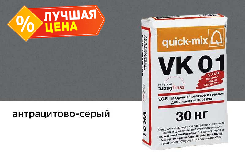 • раствор VK 01 - специальная сухая смесь для кладки сильно водопоглощающего лицевого кирпича (или камня) с водопоглощением 8-10%.
