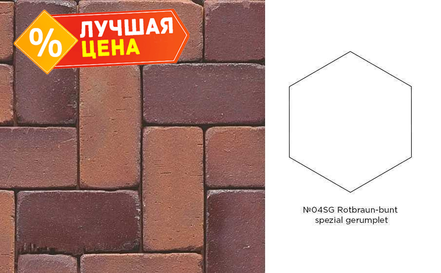 Клинкерная брусчатка Muhr №04SG Rotbraun-bunt Spezial gerumpelt, гексагон 200x20 мм