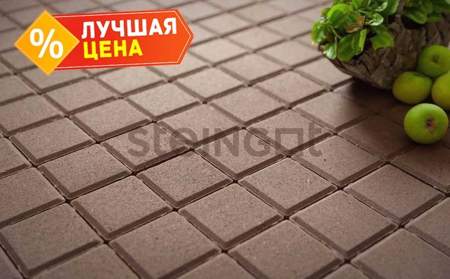 Плитка тротуарная Steingot Моно, Квадрат, темно-коричневый, 200x200x60 мм